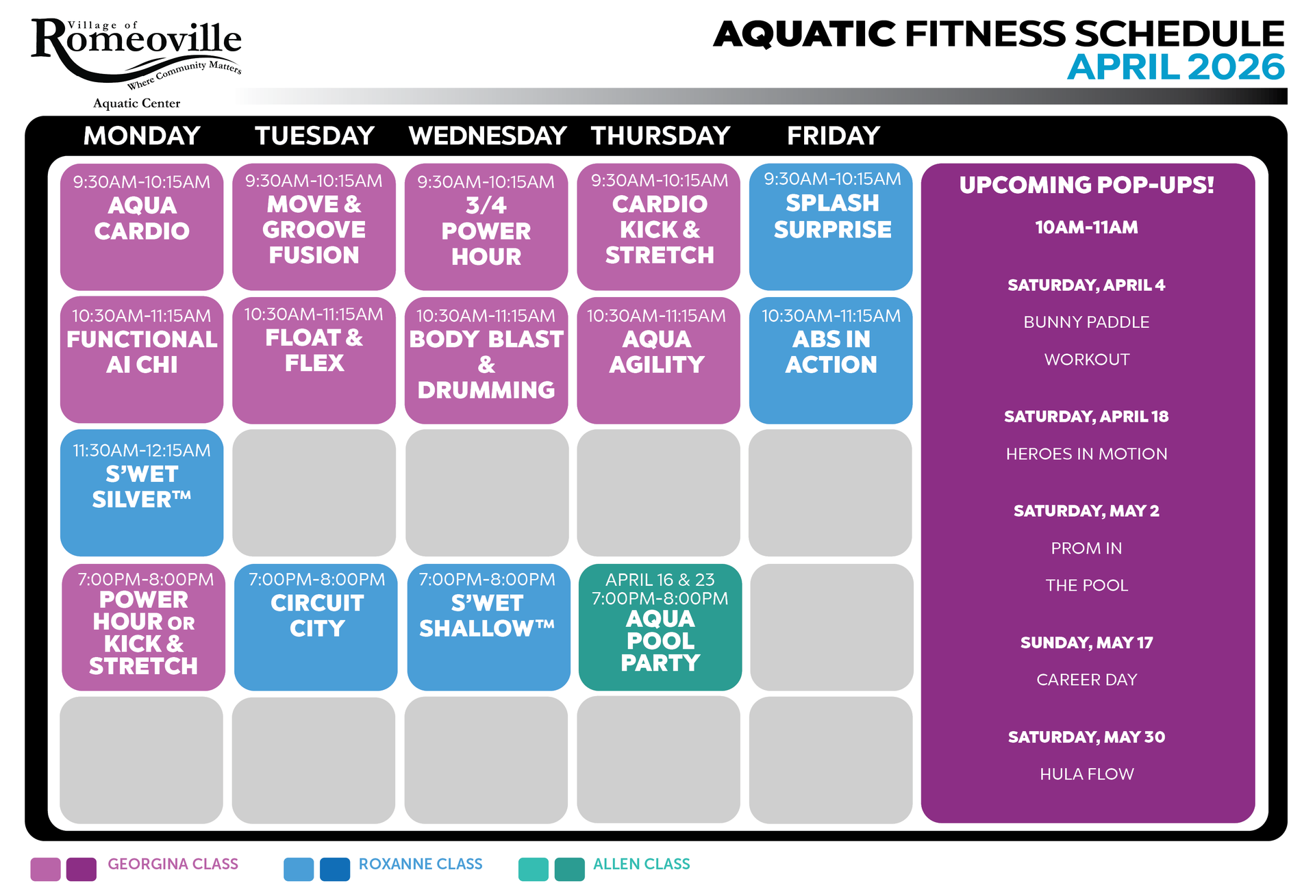 Aquatic Fitness Schedule: April